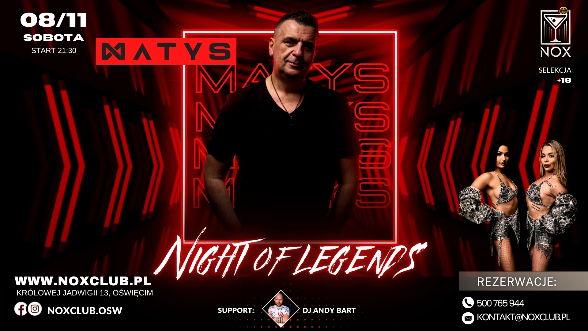 W ramach kultowego cyklu NIGHT OF LEGENDS gościem specjalnym NOX Club'u będzie DJ MATYS — jeden z najbardziej rozpoznawalnych DJ-ów i producentów w Polsce