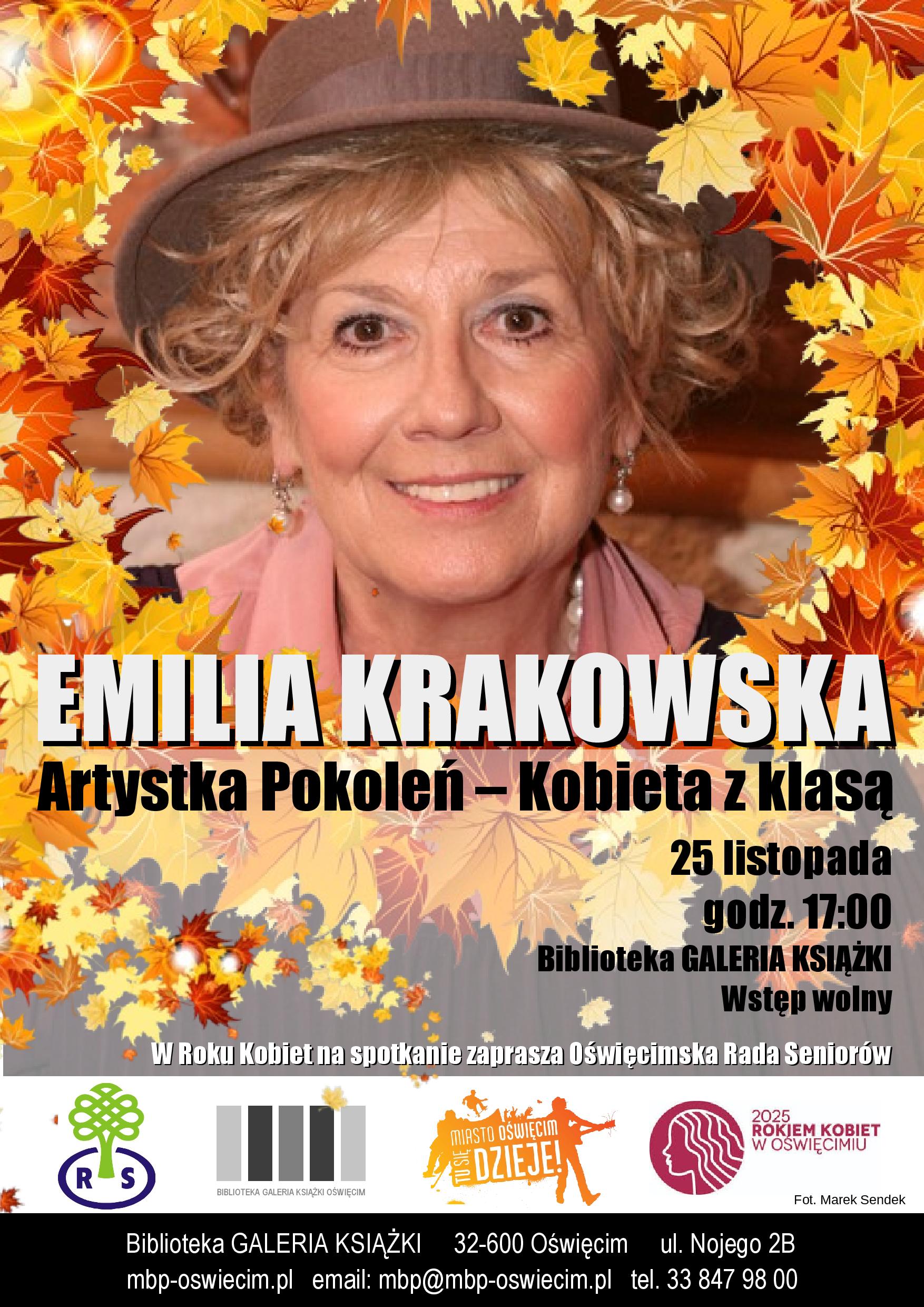 Serdecznie zapraszamy w imieniu Oświęcimskiej Rady Seniorów na spotkanie z Emilią Krakowską – wybitną aktorką filmową i teatralną, o ogromnym dorobku artystycznym.