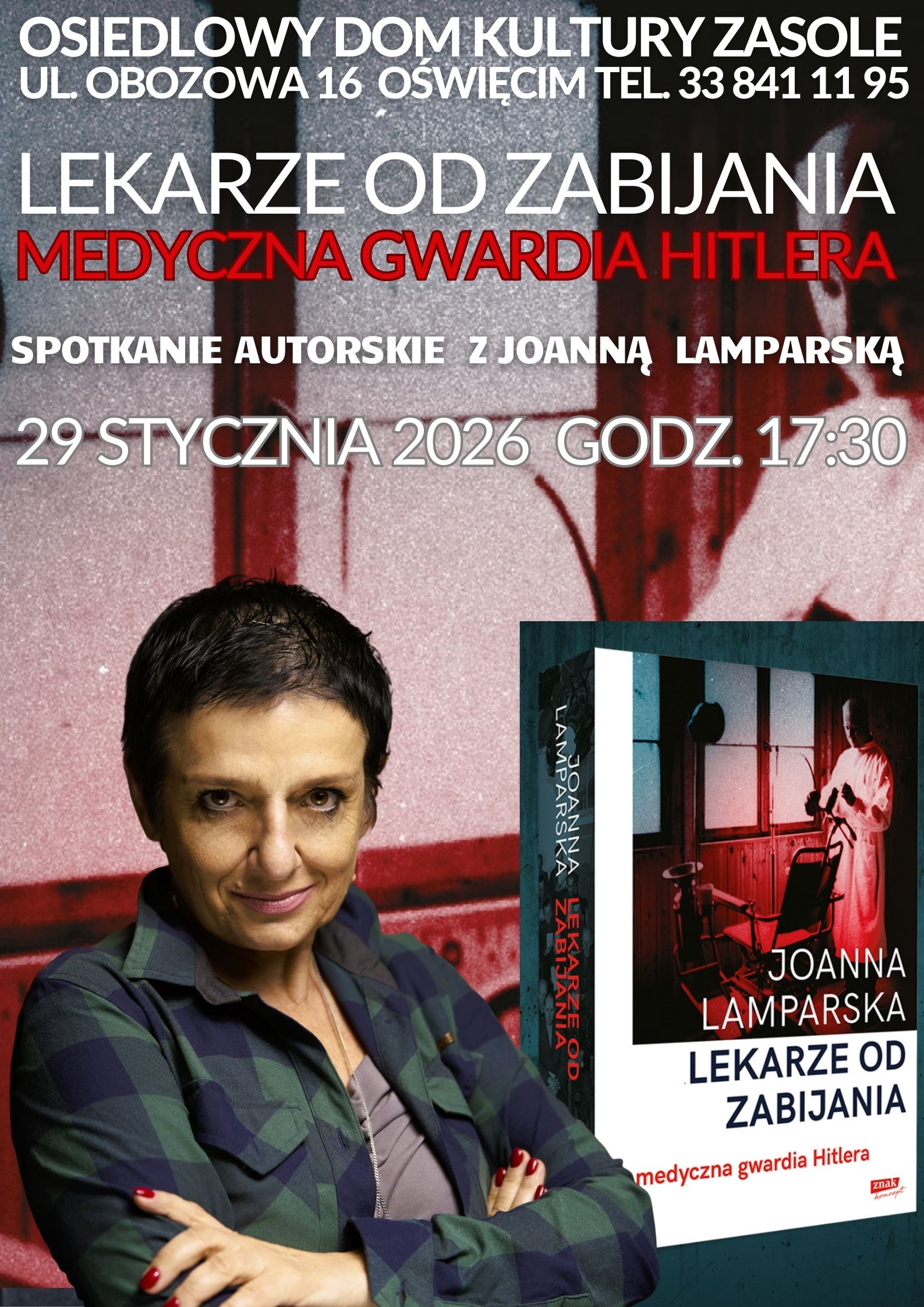 29 stycznia 2026 roku o godz. 17.30 zapraszamy w ramach Klubu Historycznego ODK Zasole na spotkanie z Joanną Lamparską autorką książki pt. „Lekarze od zabijania. Medyczna gwardia Hitlera”. Projekt Inspiracje.