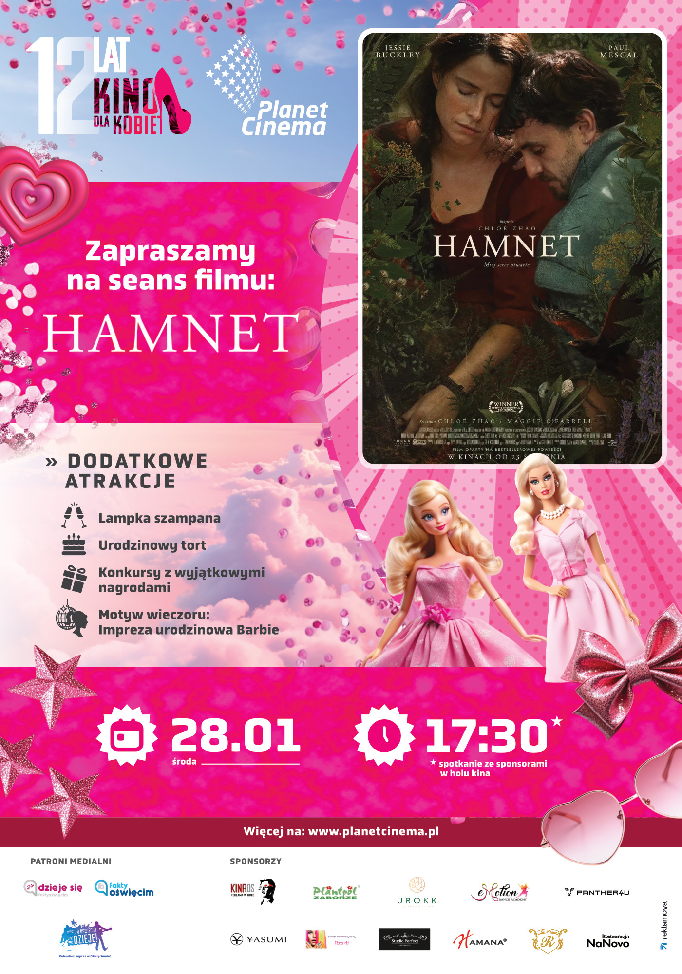 Na każdą z pań będzie czekać lampka szampana oraz urodzinowy tort! film miesiąca: Hamnet