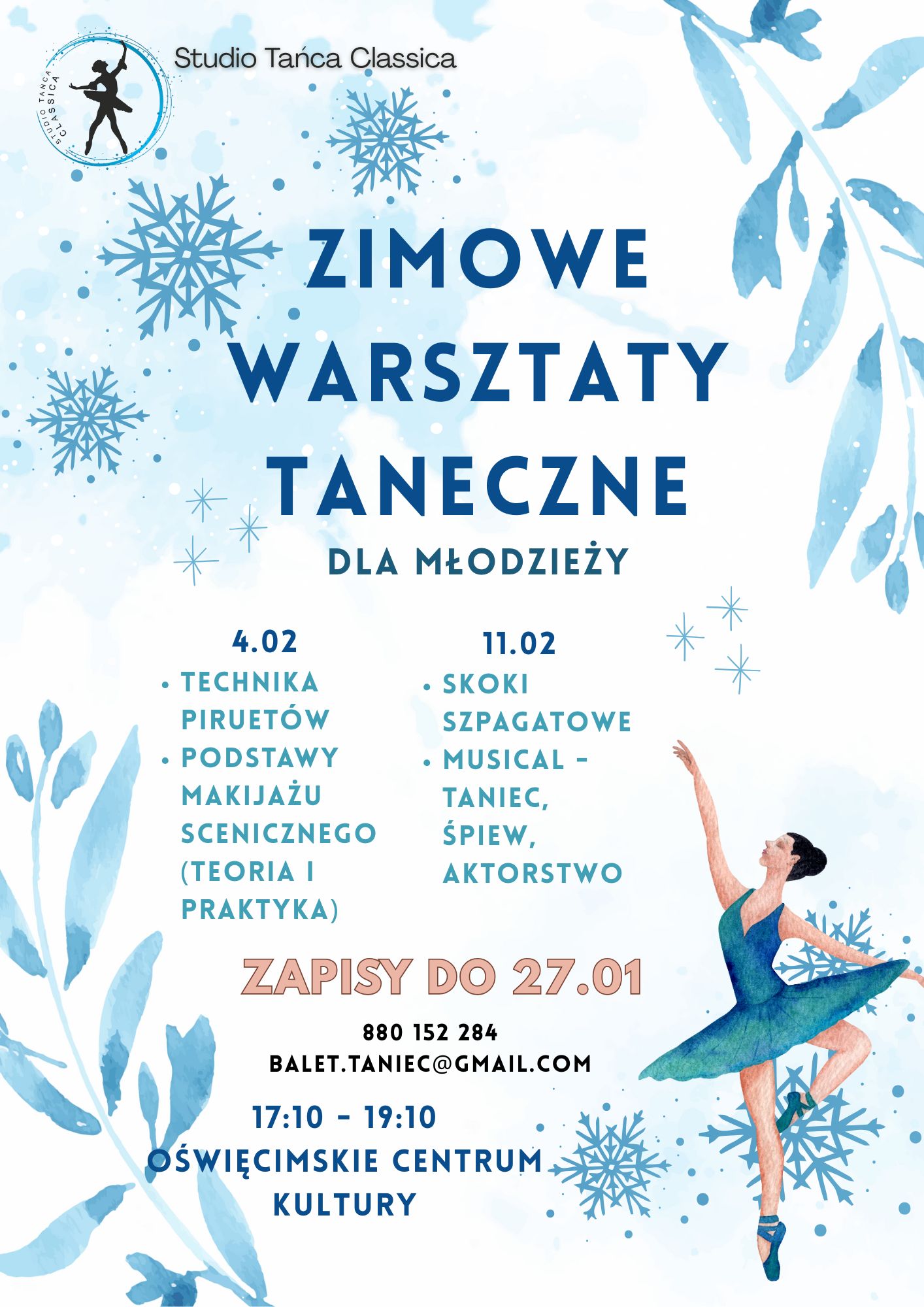 Dodatkowe informacje: 880 152 284 balet.taniec@gmail.com