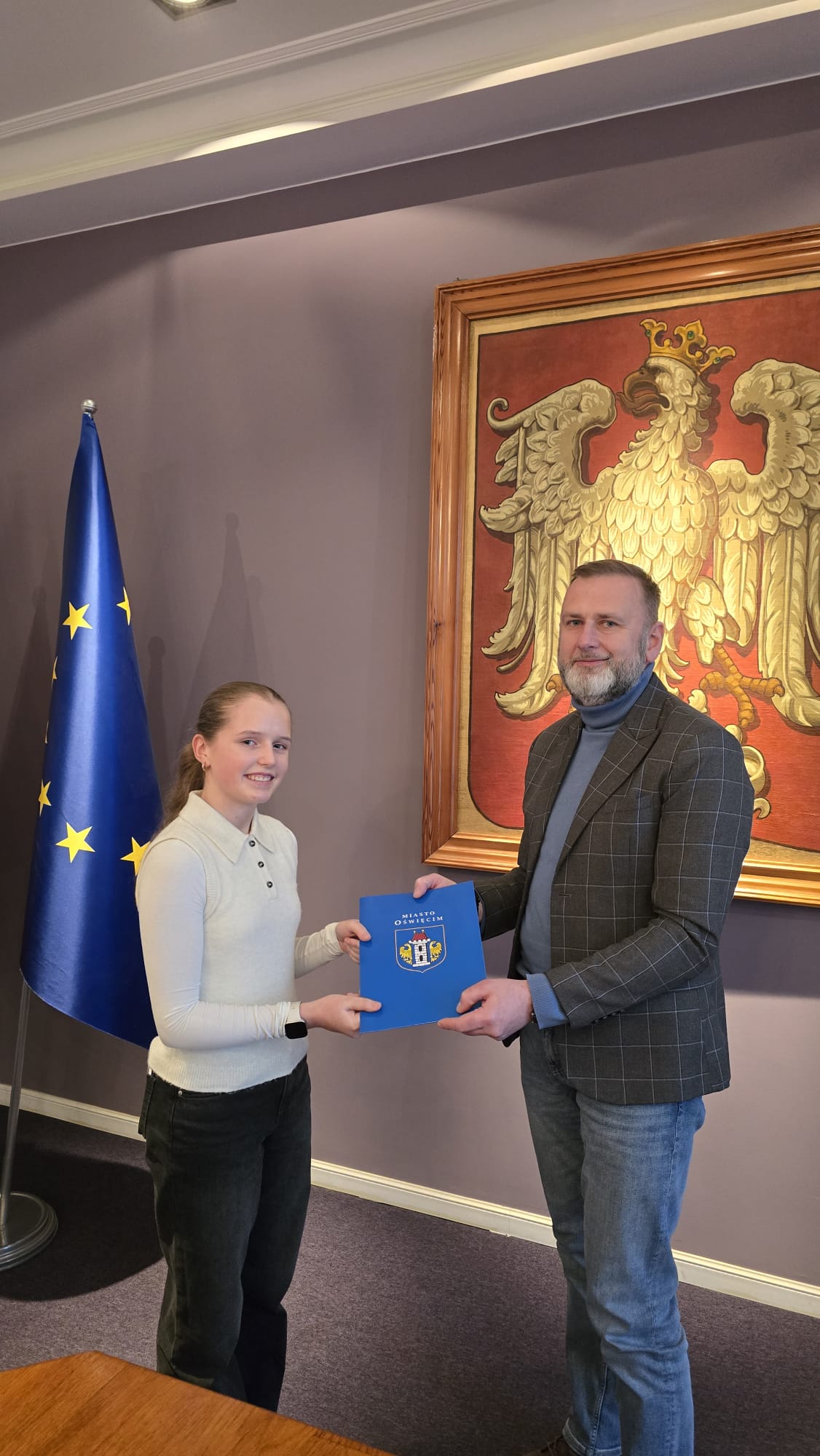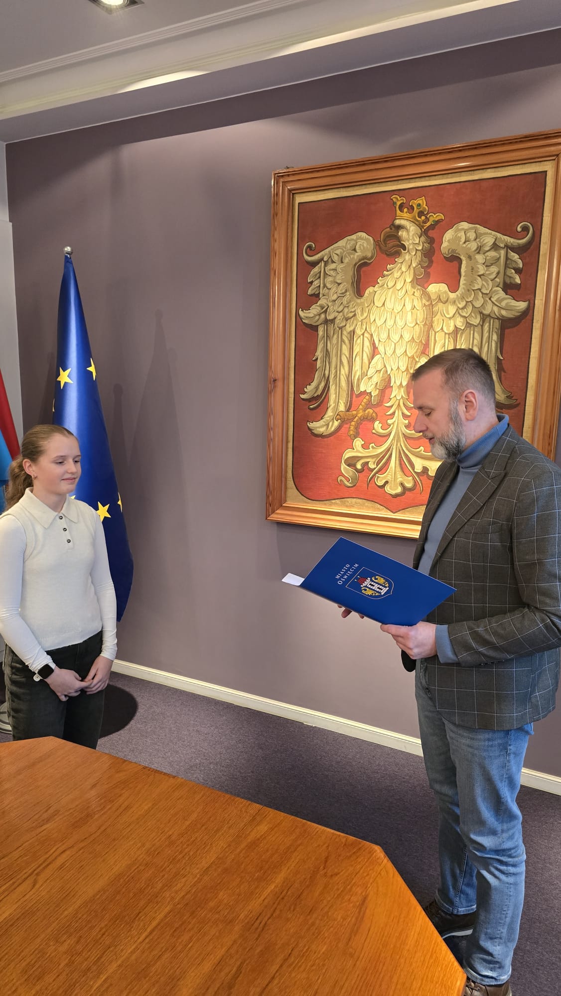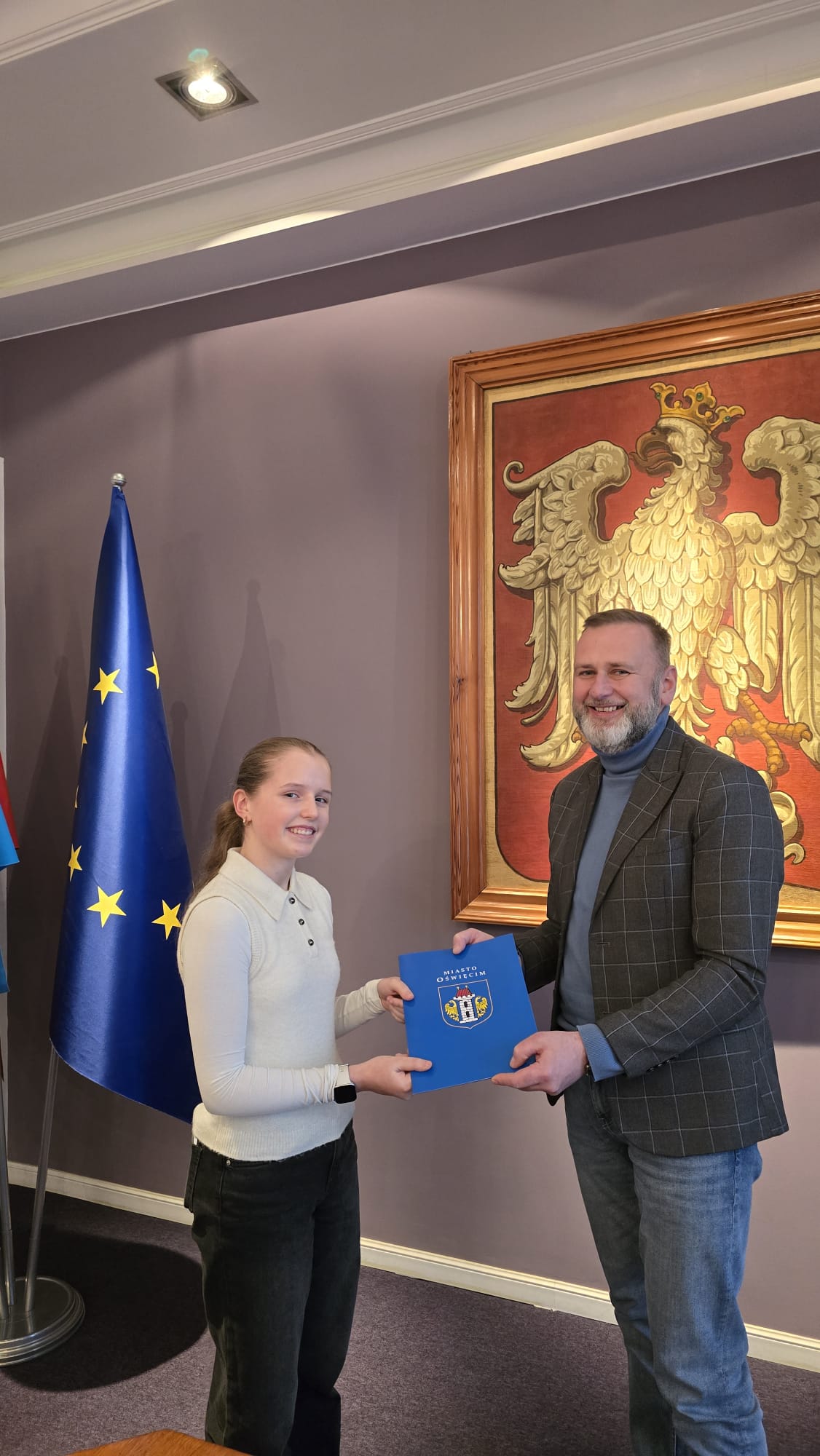 Z medalistką spotkał się zastępca prezydenta, Krzysztof Kania. Pogratulował sukcesu, życzył zawodnicze realizacji dalszych sportowych marzeń, a także odczytał i wręczył list gratulacyjny od Prezydenta Miasta. Młoda cheerleaderka otrzymała także zestaw upominków promocyjnych.