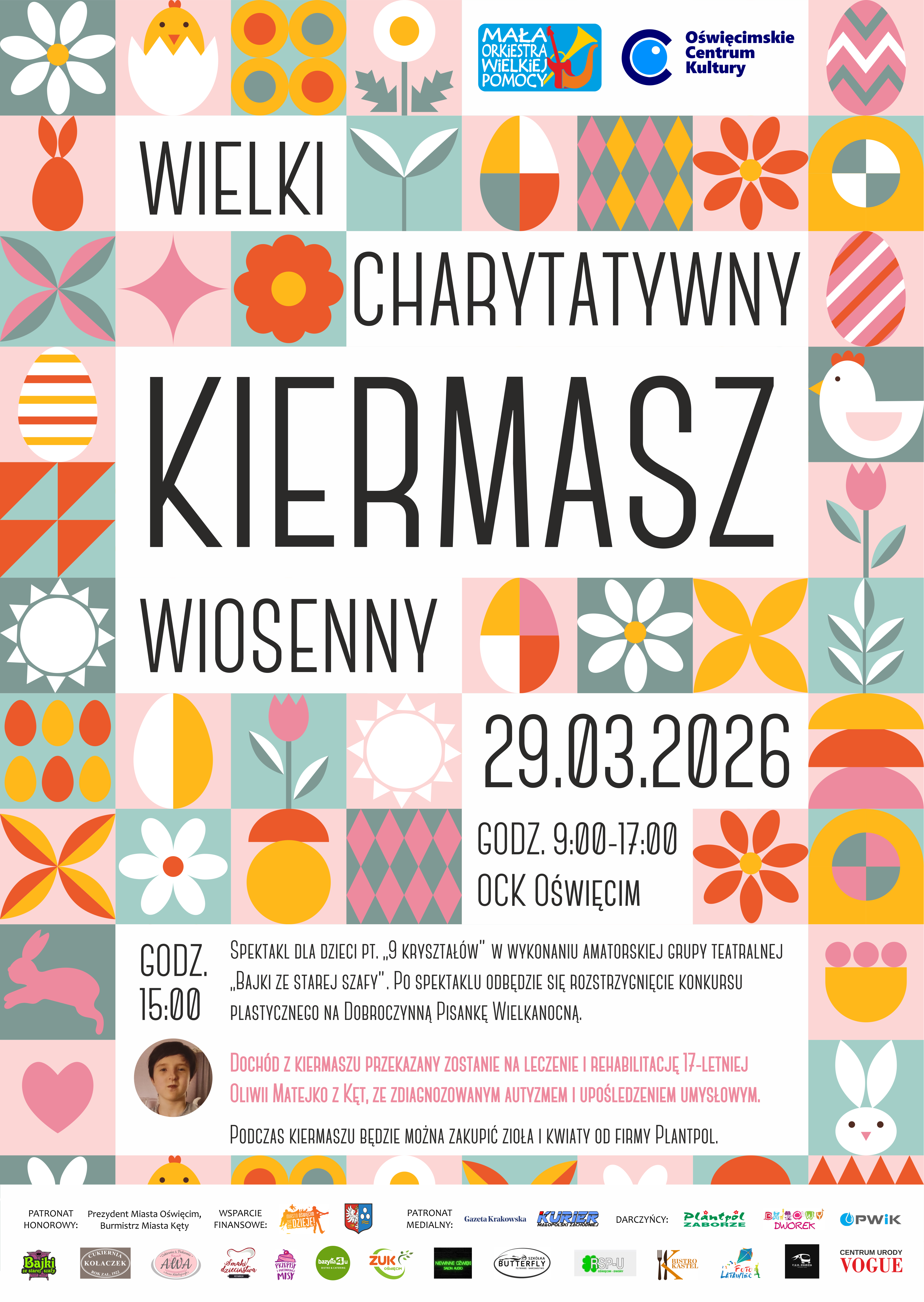 Około godz. 16:00, po przedstawieniu – rozstrzygnięcie Konkursu „Dobroczynna Pisanka Wielkanocna” i rozdanie nagród.