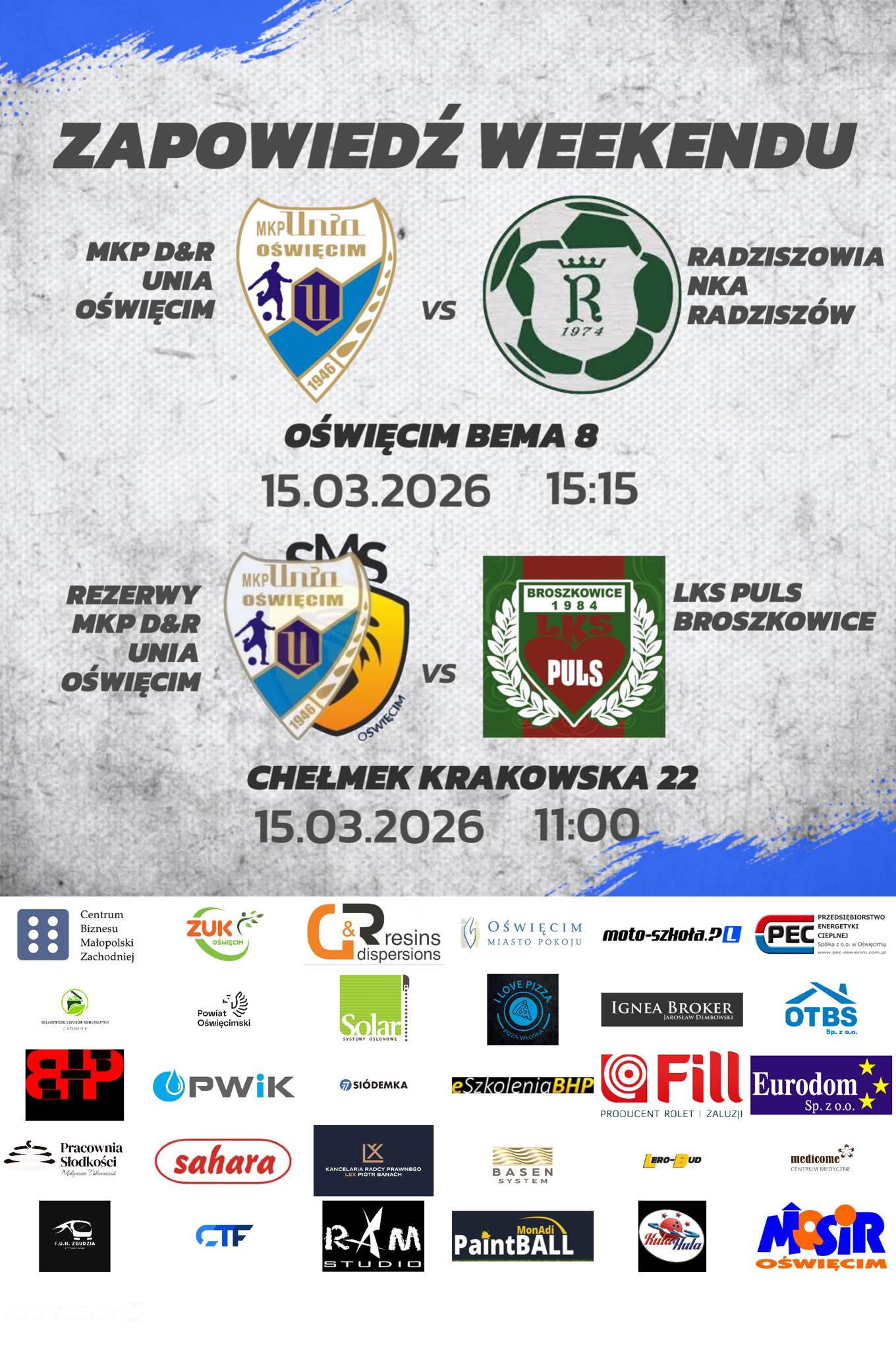 Po zimowej przerwie wracamy do zmagań ligowych pierwsza kolejka piątej ligi startuje już w ten weekend w niedzielę o godzinie 15:15 zagramy z Radziszowianką Radziszów.