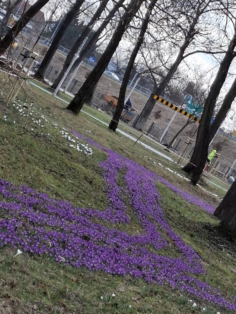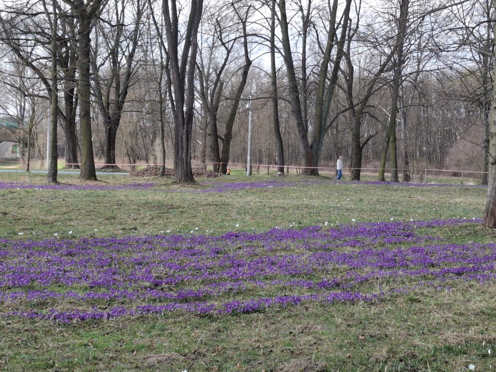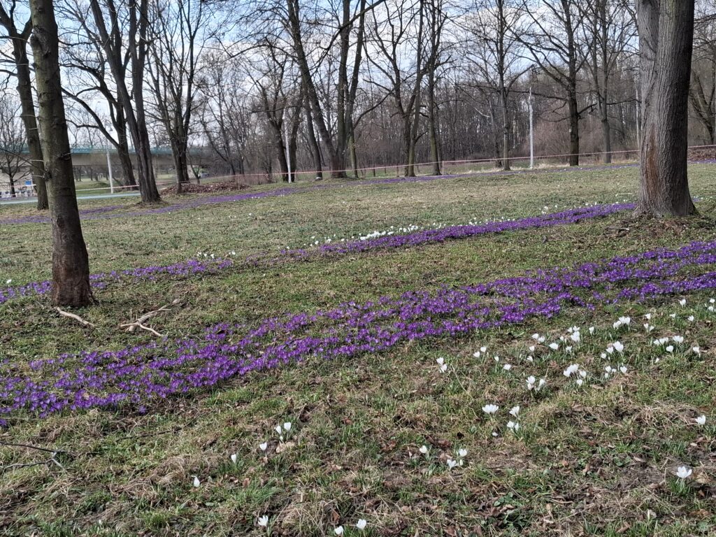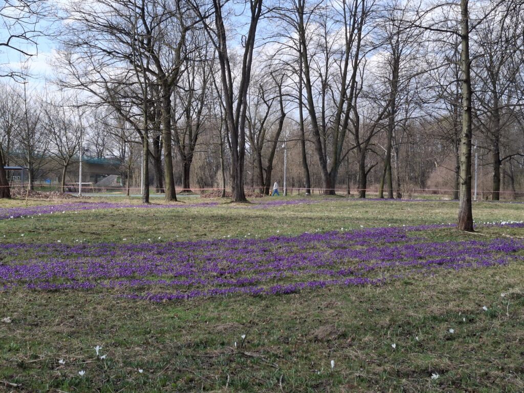 Fioletowe i białe kwiaty nadają temu miejscu wyjątkowego uroku, podkreślając jego walory estetyczne i przyrodnicze. To jeden z najpiękniejszych i najbardziej wyczekiwanych momentów wczesnej wiosny, który zachęca mieszkańców do spędzania czasu na łonie natury.
