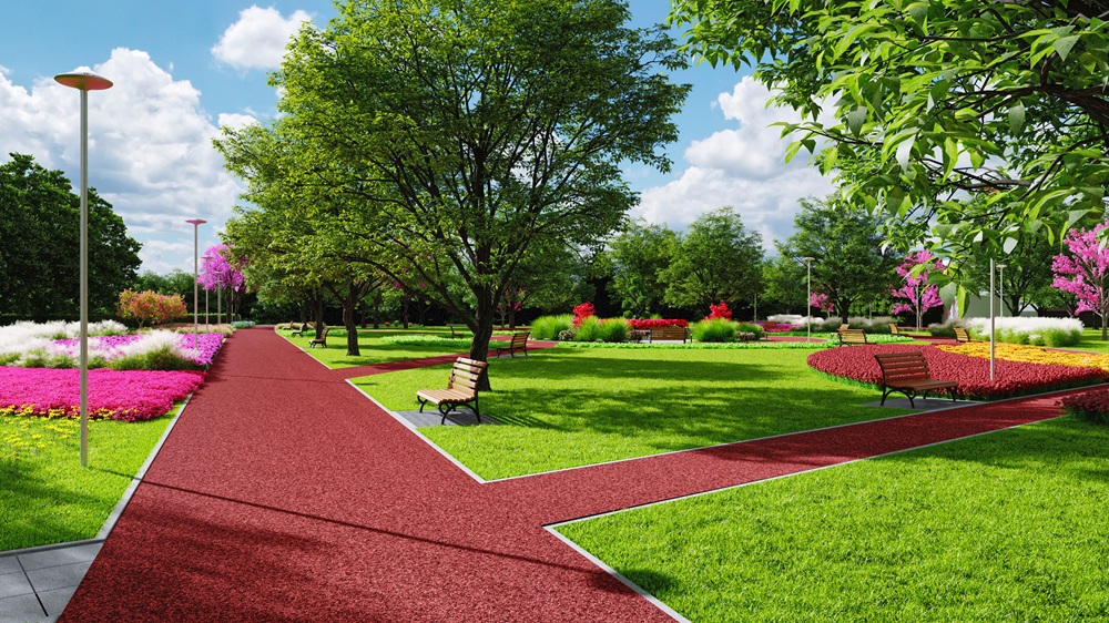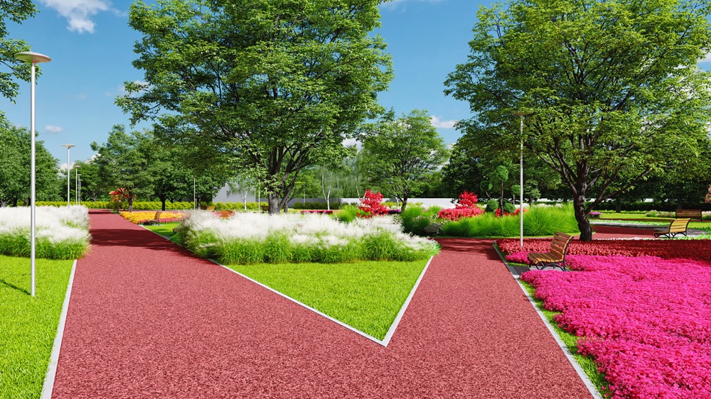 wizualizacja 2 – widok na alejki i zieleń