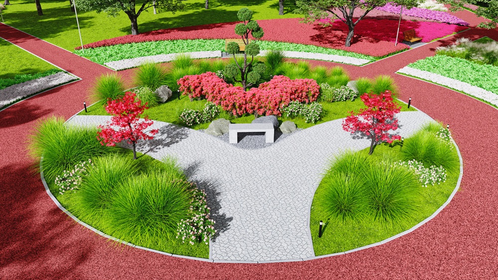 wizualizacja 3 – widok na alejki i ogród japoński