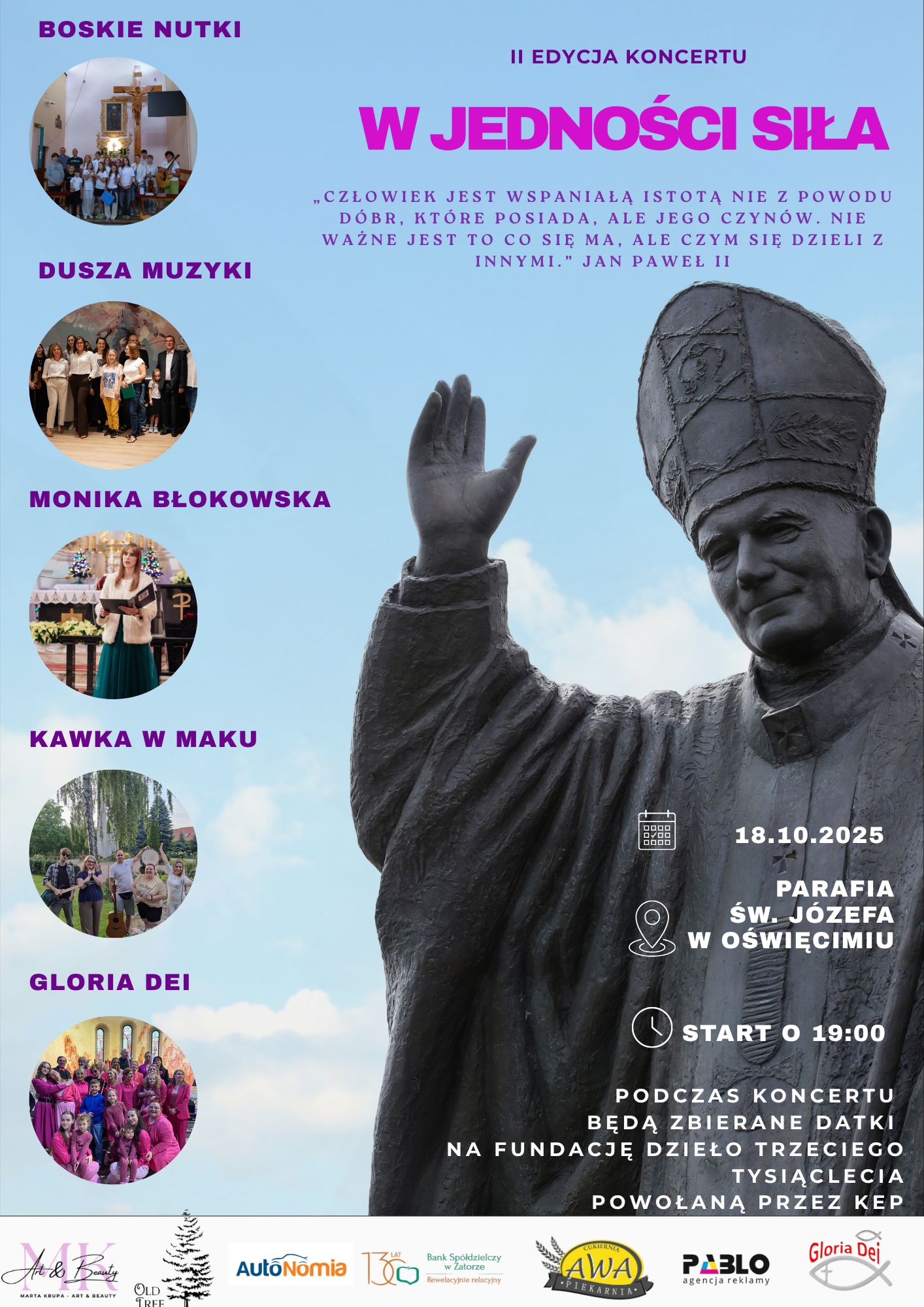 II edycja koncertu ku czci św. Jana Pawła II - „W jedności siła”.